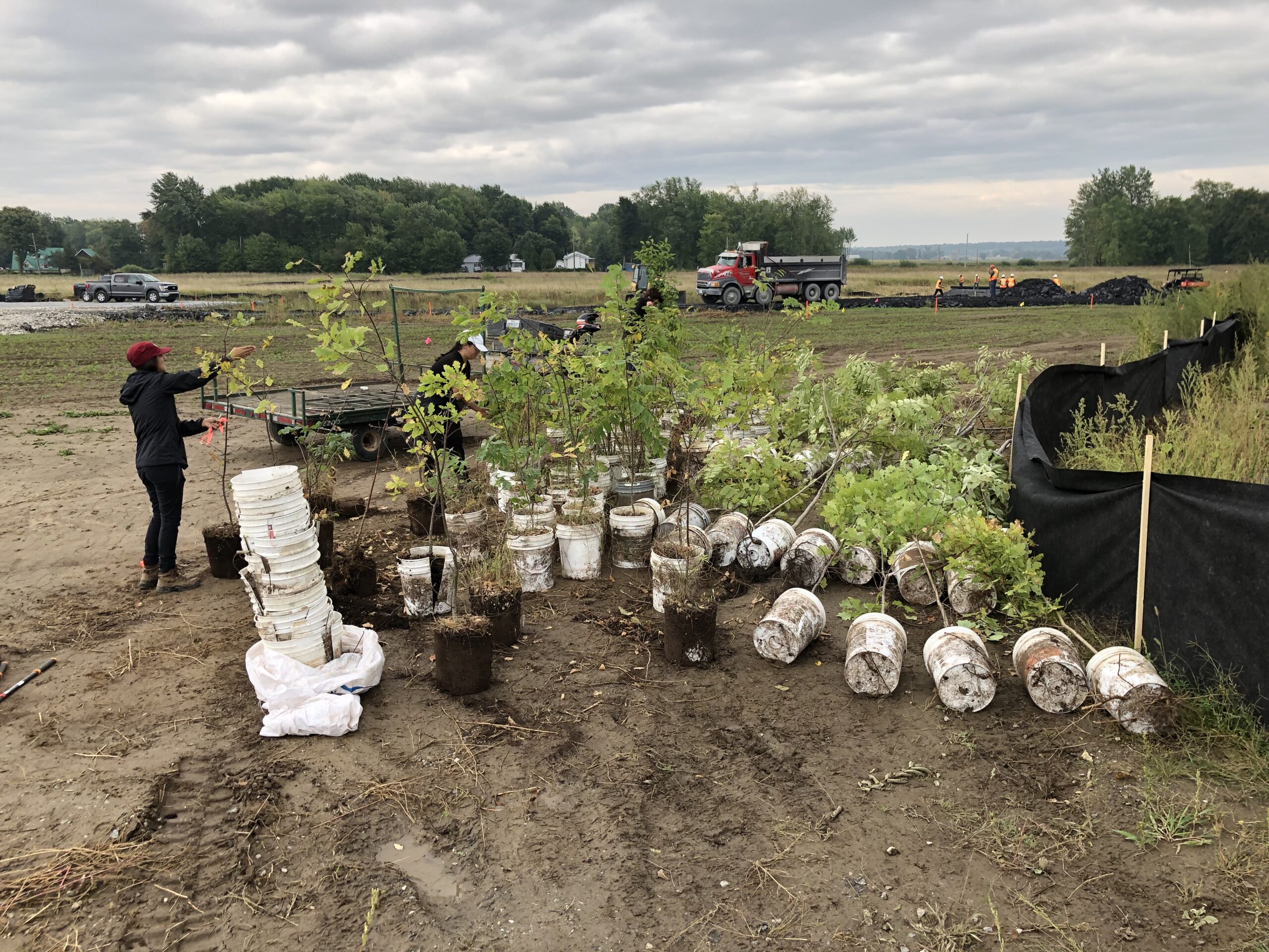 Plantation de 10 342 arbres et d’arbustes (de 39 espèces différentes) du côté est de la rivière aux Brochets sur une superficie d’environ 15 hectares. Les patrons de densité et de composition, ainsi que les patrons de biodiversité sont complétés et sont maintenant prêts à être étudiés!