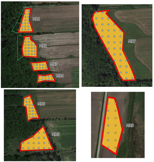 Comme les milieux en friches diffèrent beaucoup les uns des autres (quantité d’arbres et d’arbustes, herbes hautes, présence d’espèces végétales exotiques envahissantes, etc.) un échantillonnage de sols plus complet a été réalisé. Une distinction a été faite entre le type de cultures agricoles : maïs (MR8) ou foin.