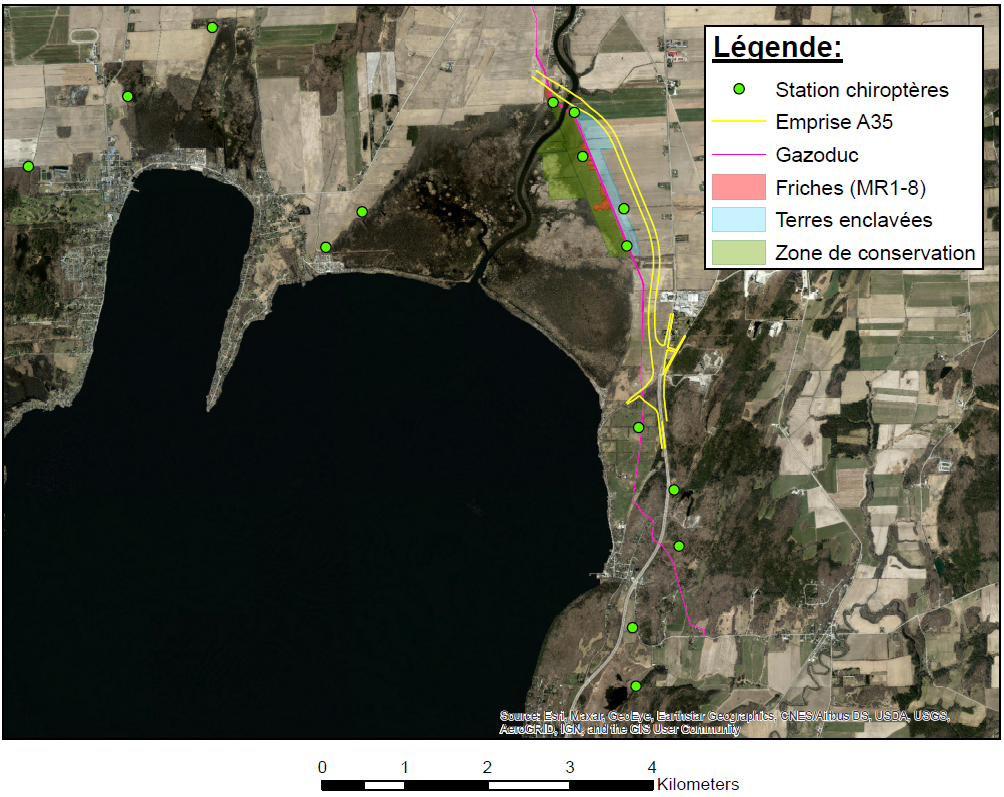 Au Québec, il existe huit espèces différentes de chauvesouris et six de ces espèces sont confirmées être présentes aux différents points d’échantillonnage.