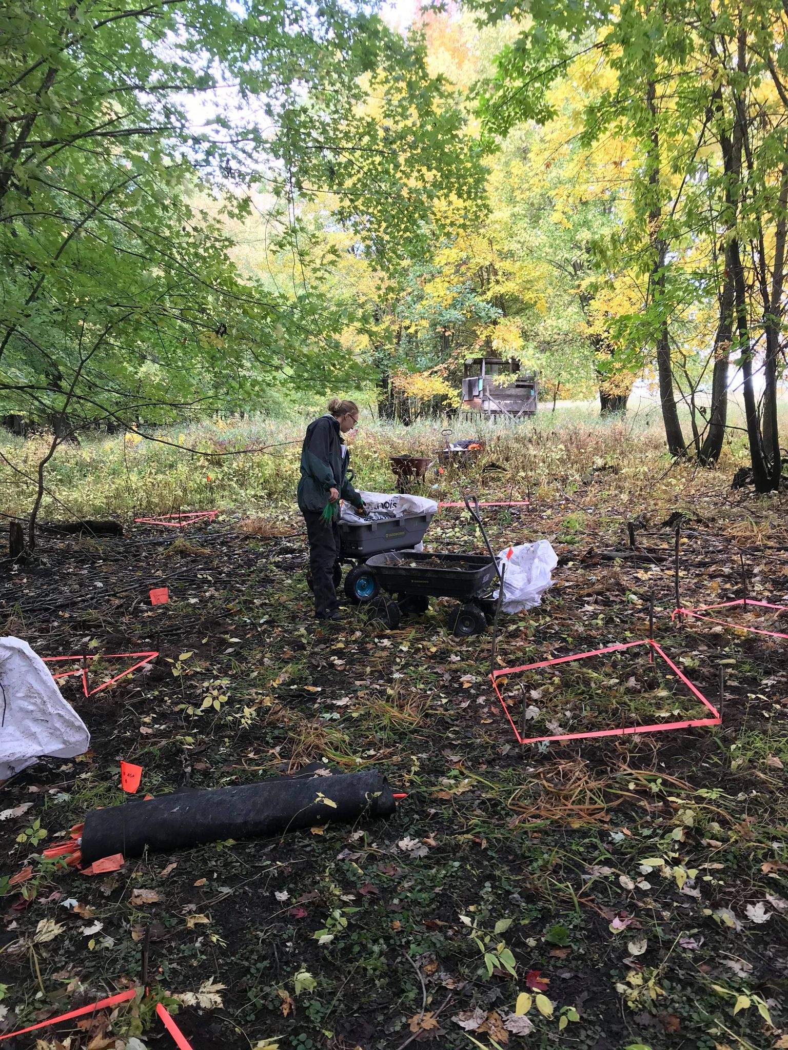 - Le prélèvement de matière organique (terre, bois, feuilles mortes) fait partie des méthodes utilisées dans l’application d’une approche écosystémique pour la restauration du site. La matière organique, permet de stimuler l’activité de la faune du sol, ce qui favorisera par la suite l’établissement, la croissance et la reproduction des plantes.