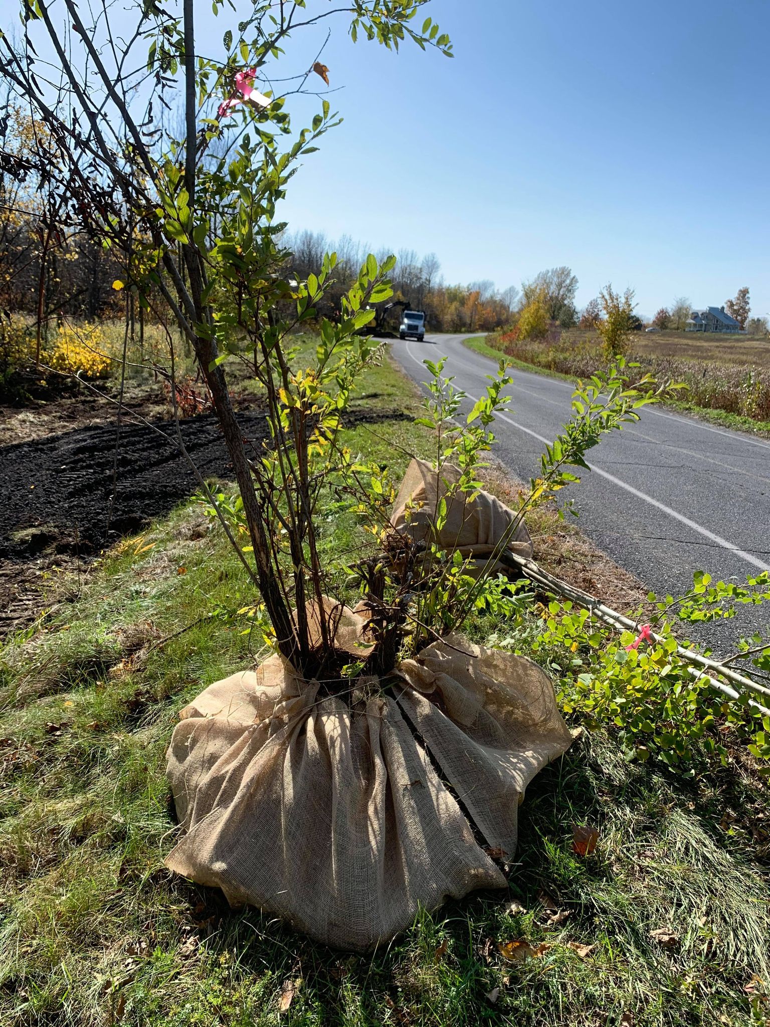 - Arbres : le prélèvement et la transplantation de gros arbres s’effectue à l’aide de machinerie (transplanteuse ou petite excavatrice)